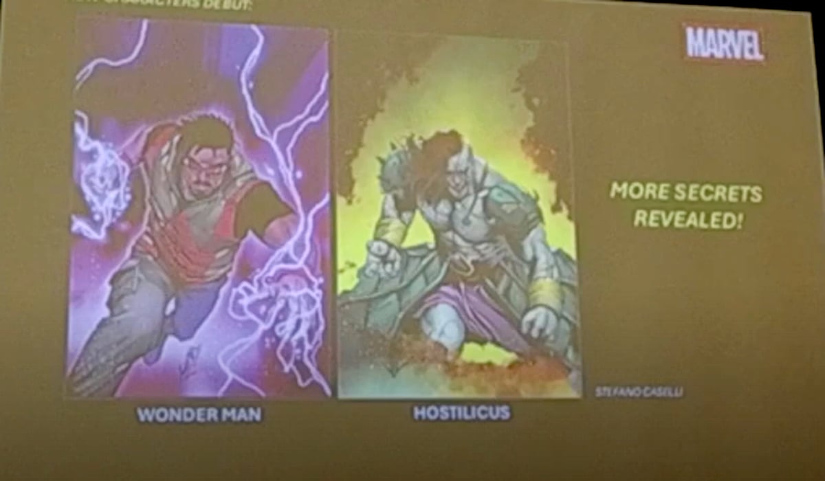 The new Wonder Man’s existence was revealed at ComicsPro 2026 by Marvel SVP of Print, Sales & Marketing David Gabriel, who revealed that he’d be one of a new group of Marvel characters coming out of the upcoming Reborn: Ultimate Impact series, empowered by the Origin Boxes of the Ultimate Universe — but beyond a brief appearance onscreen (captured in this admittedly low-quality image below; my apologies for that), nothing else was revealed about him.