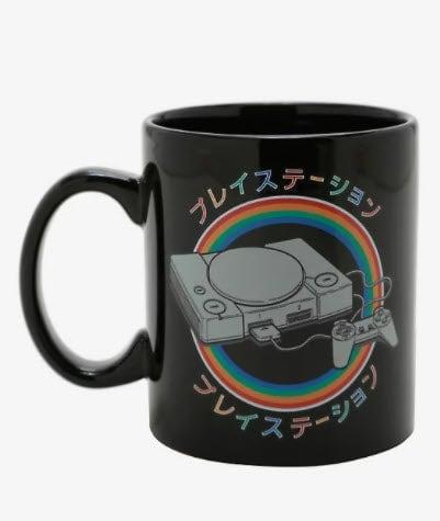 Go retro with this PS1 Katakana mug! If your gamer collects mugs, reps PlayStation, and drinks coffee all night after saying “let me get to one more save point,” then this is the drinkware for them.