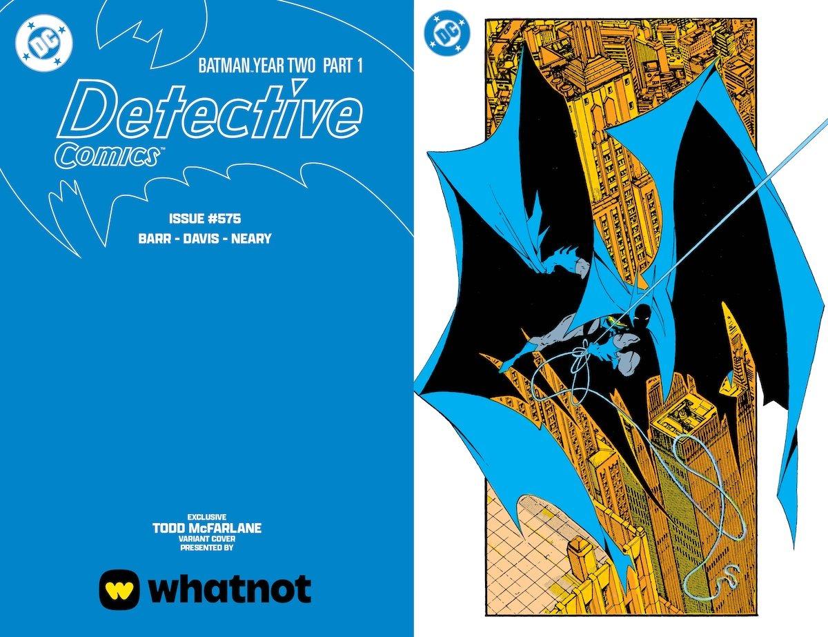 For New York Comic Con 2025, Whatnot has created a limited edition collectible only available through their on-site Whatnot House (Booth #1000 on the show floor of the Javits Center) to mark the impact that McFarlane has had on the character: a variant edition of Detective Comics #575 — the first chapter of ‘Batman: Year Two’ — with Todd McFarlane cover art, taken from his work on the interior of Detective Comics #578. Take a look at the cover: