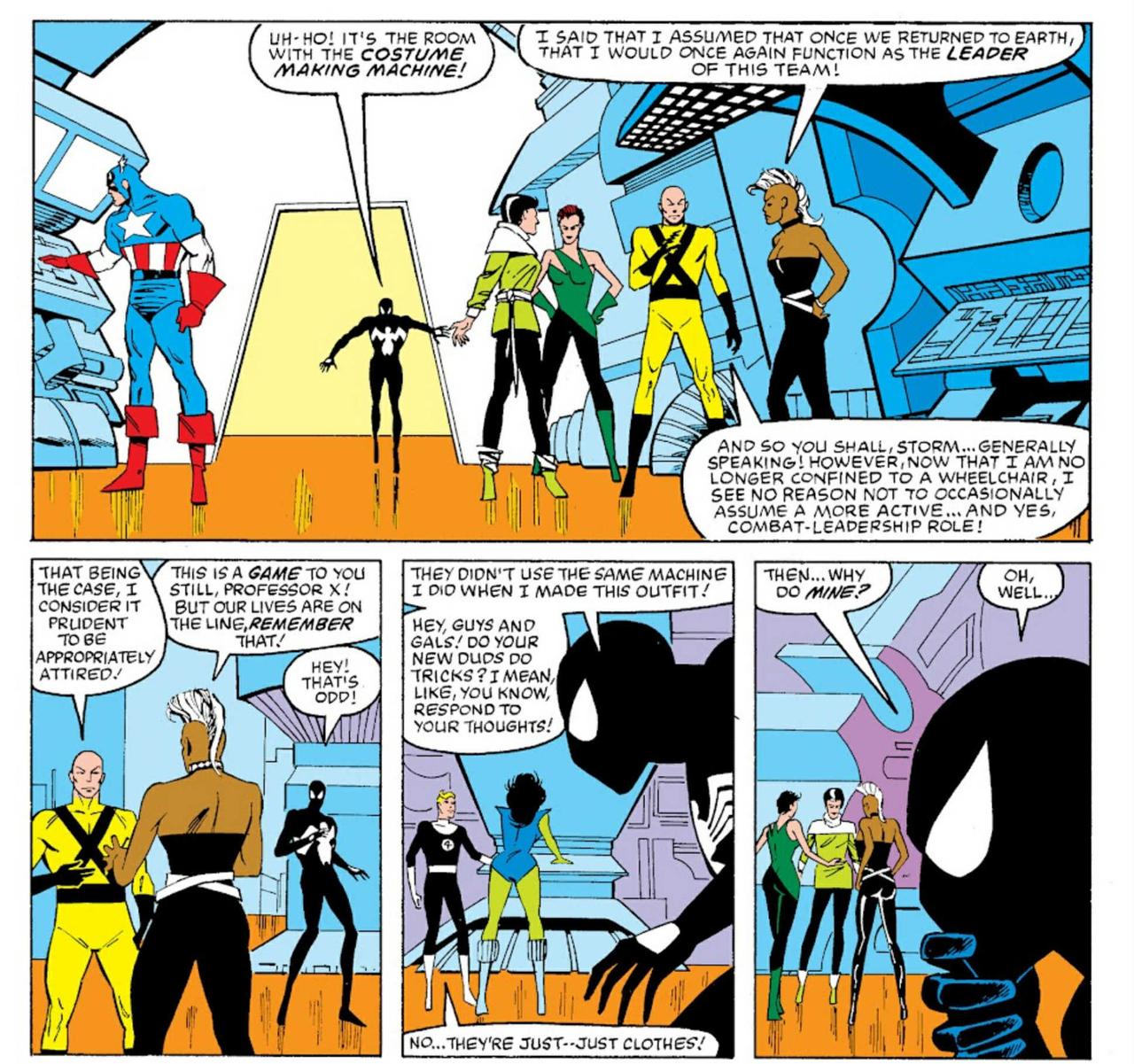 Ben Grimm decides to stay behind and find himself. While on Battleworld, Ben is able to transform back to human at will, something he can’t do on Earth, and he wants to get to the bottom of it. She-Hulk takes his place on the Fantastic Four, returning to Earth with the team. Spider-Man takes his new black costume with him, unaware that it’s a living alien symbiote. This would cause him years of grief.