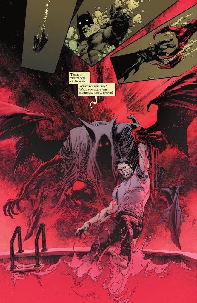Having endured plenty of hallucinogenic confrontations with his greatest fears, often thanks to the fear-manipulating supervillain Scarecrow, Batman identifies this as an altered reality quickly and claims to have overcome his childhood trauma long ago. Insomnia counters this by placing Batman in Joe Chill’s body to kill his parents, offering a new wrinkle and change in perspective on the infamous night in Crime Alley. Overcoming Insomnia’s nightmare, Batman takes the time to assure his childhood self that he will one day make new friends to help him fight his deep-seated pain and become stronger from it before emerging into the waking world to confront Insomnia.