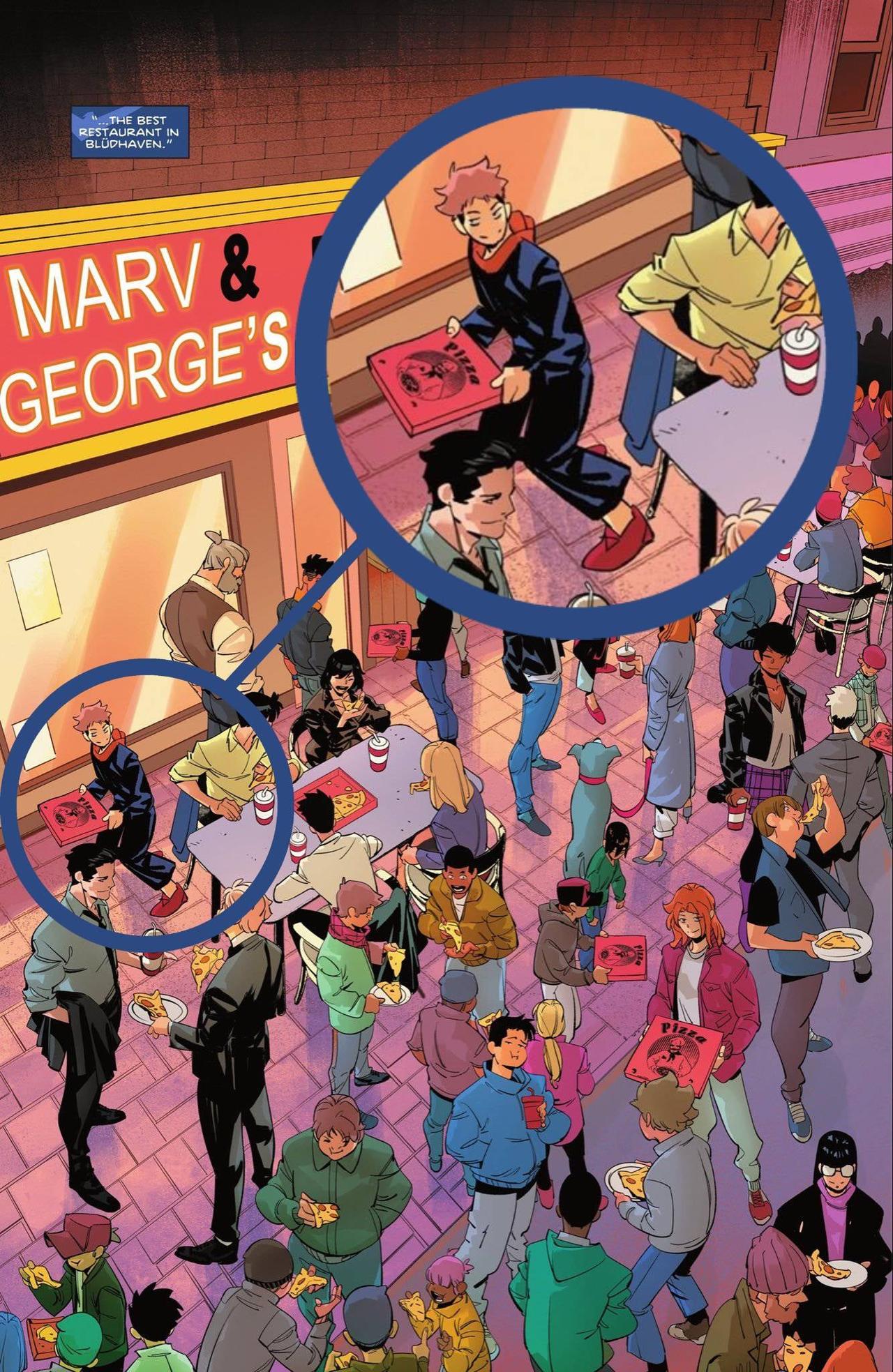 First brought to our attention via the Twitter/X profile for ScreenTime and then confirmed by artist Daniele Di Nicuolo, the cameo appears on the page pictured below. Since we don't want to spoil the surprise, go ahead and take a look at the page first to see if you can spot Yuji.