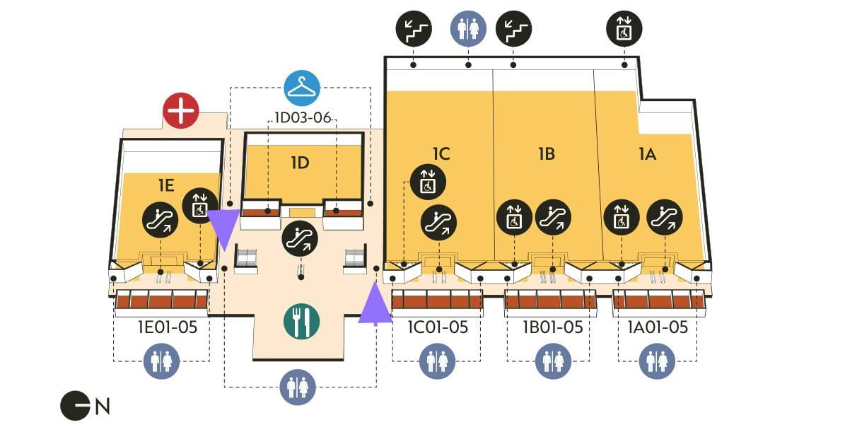 And if you want to avoid the bustle of that floor, you can head to the other pair on the first floor, as indicated here: