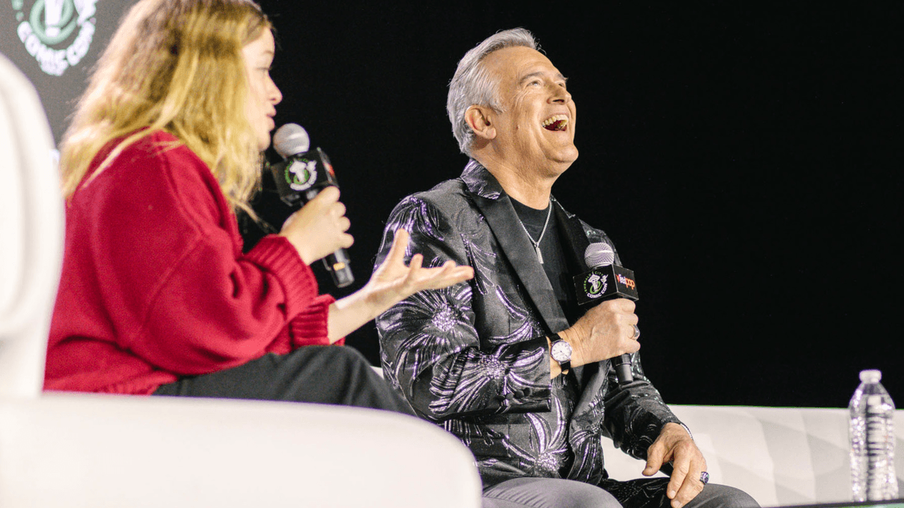 Specifically, Campbell was appearing at the (Popverse hosted!) Dead by Dawn panel, which reunited the actor with fellow face of the franchise Jane Levy. At the end of the discussion, we thought it would be fun to see if Bruce and Jane could use their knowledge of the Sam Raimi-created franchise to correctly spell the ancient mantra, which a shaman tells Campbell's character Ash Williams to use in order to summon magic.