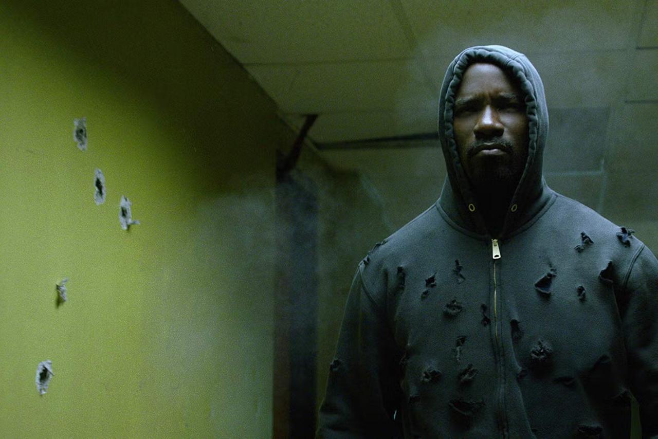 Luke Cage’s Michael Andrews suit lives on — but the bullet-hole hoodies are gone, says Mike Colter.